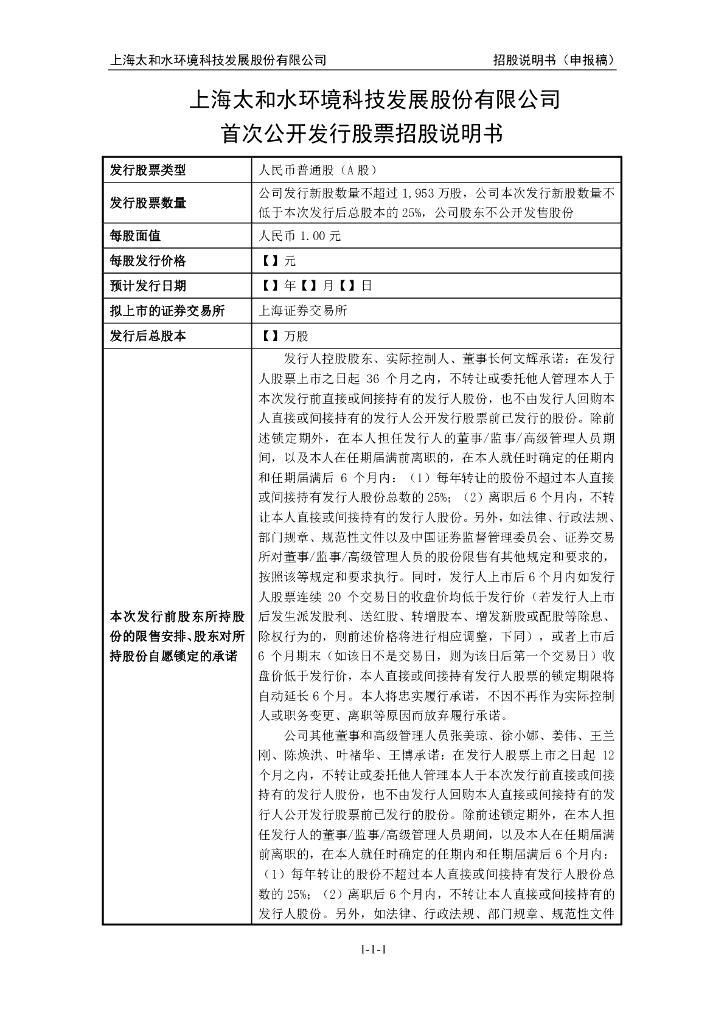 上海太和水环境科技发展股份有限公司上交所主板IPO上市招股说明书.pdf