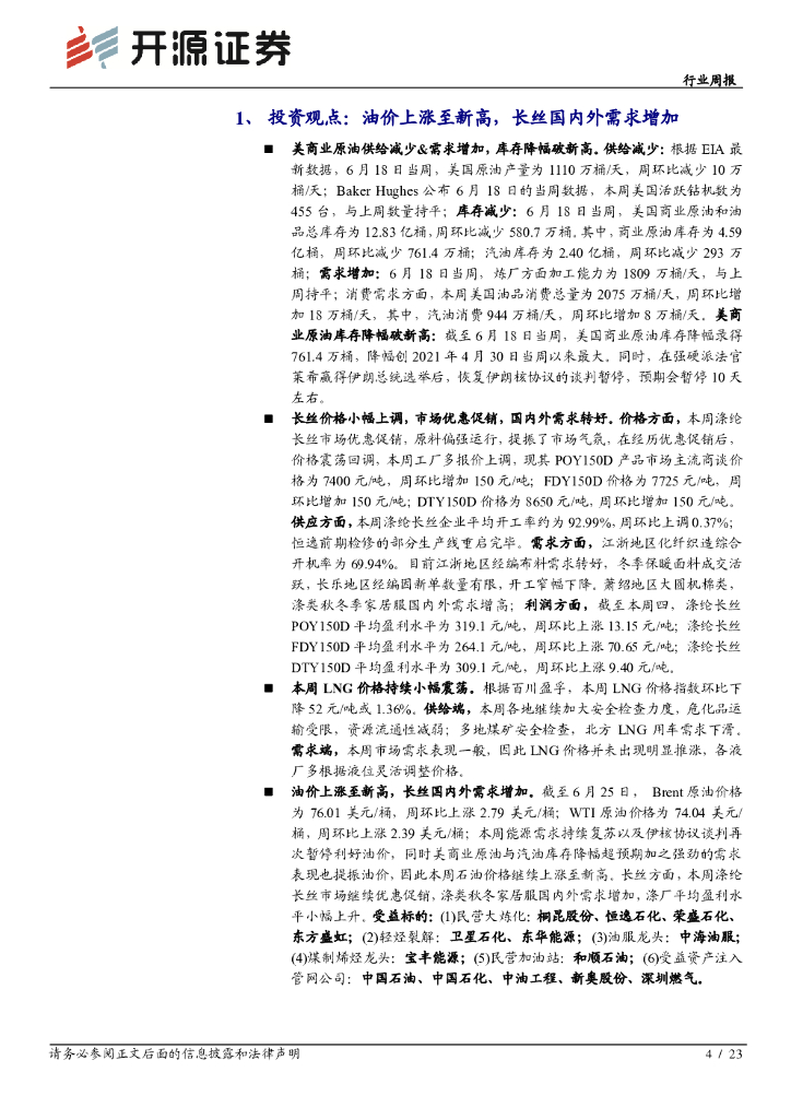开源证券:石油化工行业周报:油价上涨至新高,长丝国内外需求增加.pdf