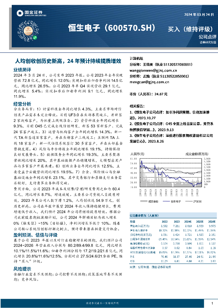 国金证券:恒生电子(600570)-人均创收创历史新高,24年预计持续提质增效.pdf