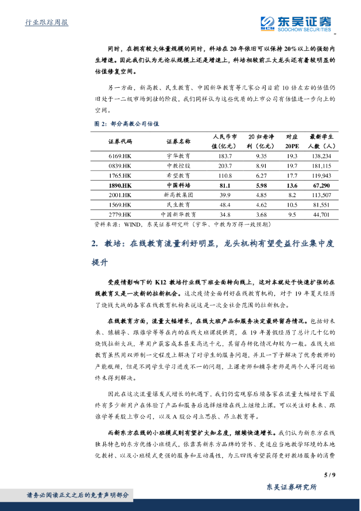 东吴证券:综合行业跟踪周报:高教中科培有望继续提升估值,教培板块有望迎来集中度提升.pdf