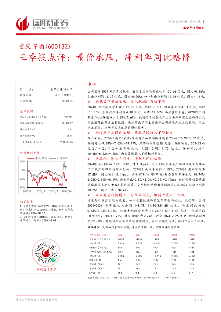 国联证券:重庆啤酒(600132)-三季报点评:量价承压,净利率同比略降.pdf
