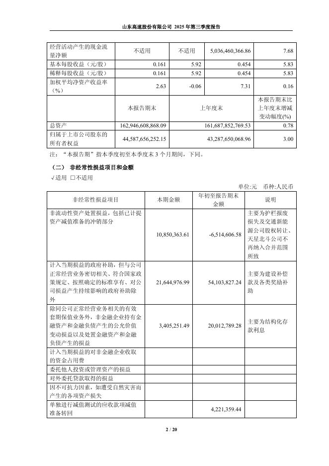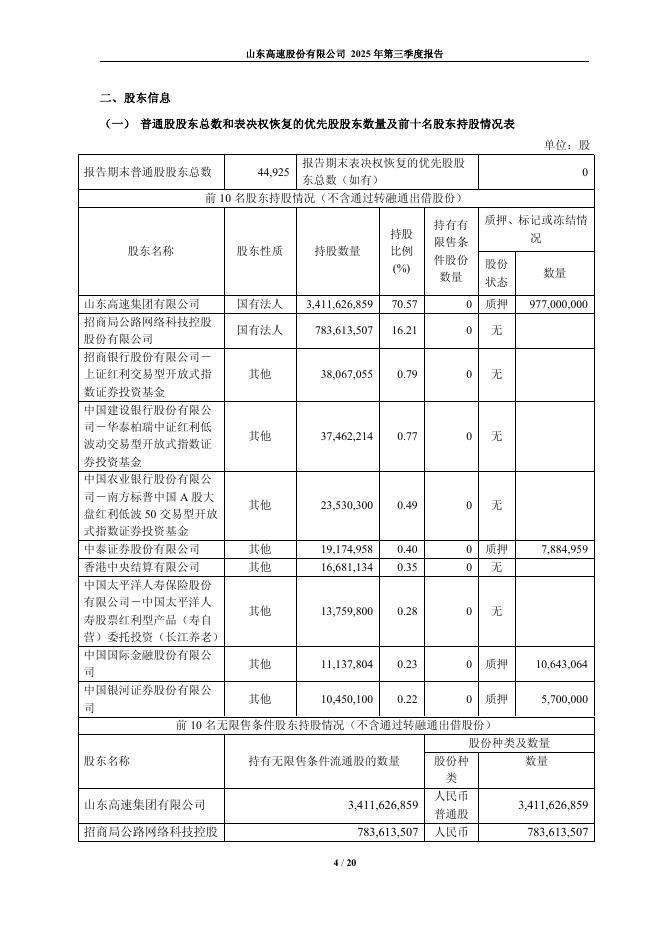 600350-山东高速:山东高速股份有限公司2025年第三季度报告.pdf