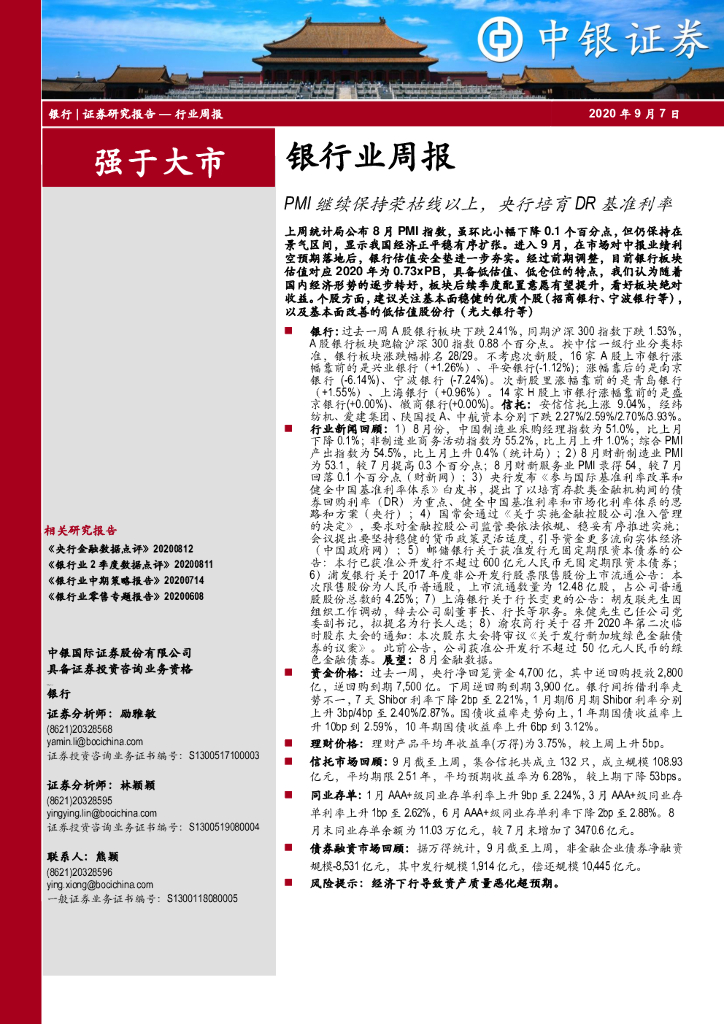 中银证券:银行业周报:PMI继续保持荣枯线以上,央行培育DR基准利率.pdf