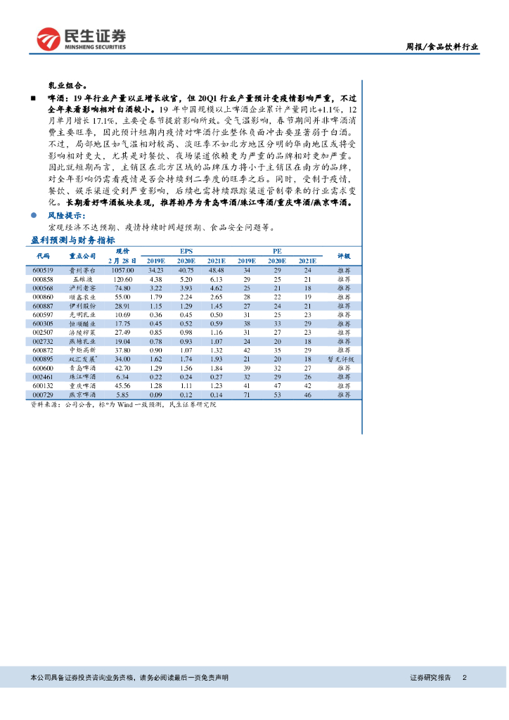 民生证券:食品饮料行业周报:茅台开始打款,再次强调春节提前带来的板块年报行情.pdf
