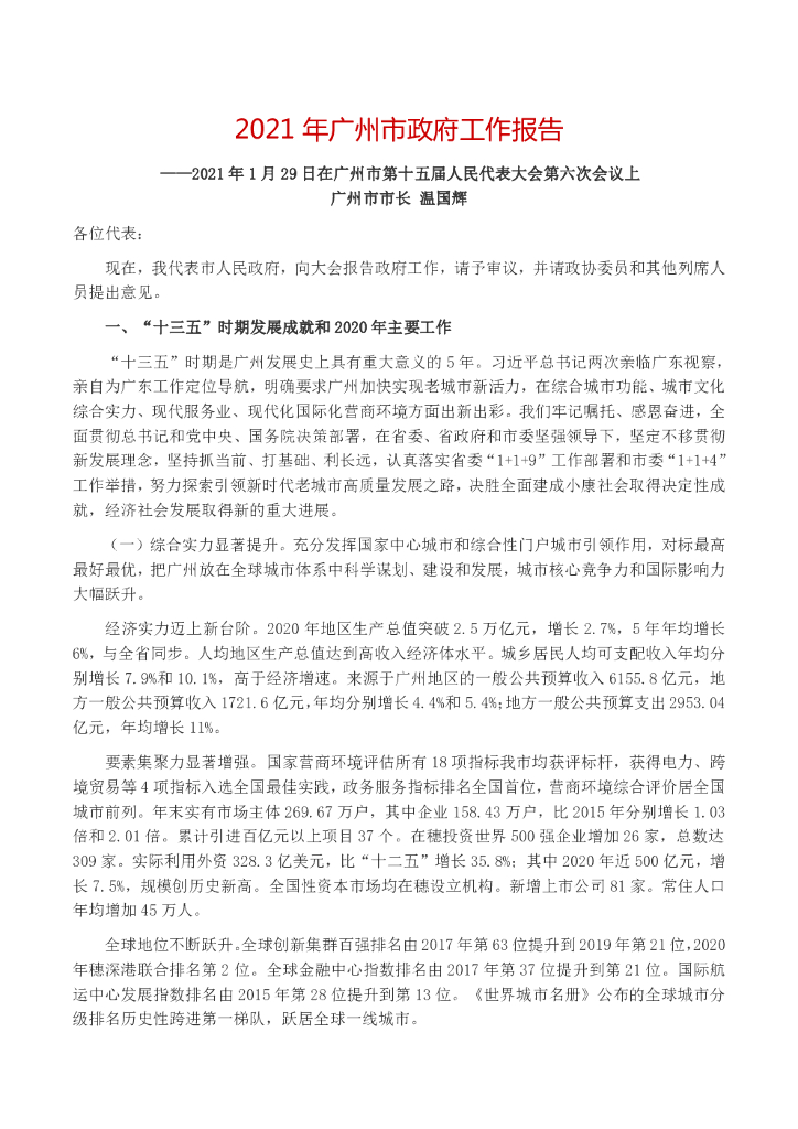 广州市2021年政府工作报告(全文).pdf