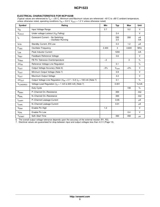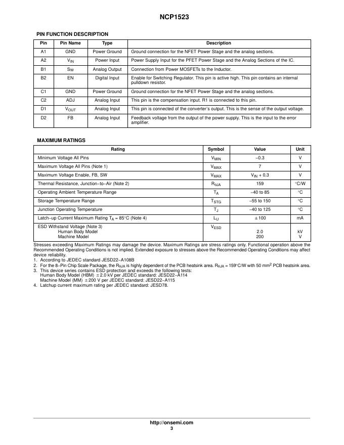 ON SEMICONDUCTOR - NCP1523 3 MHz, 600 mA, High−Efficiency, Adjustable Output Voltage Step−down Converter 说明书