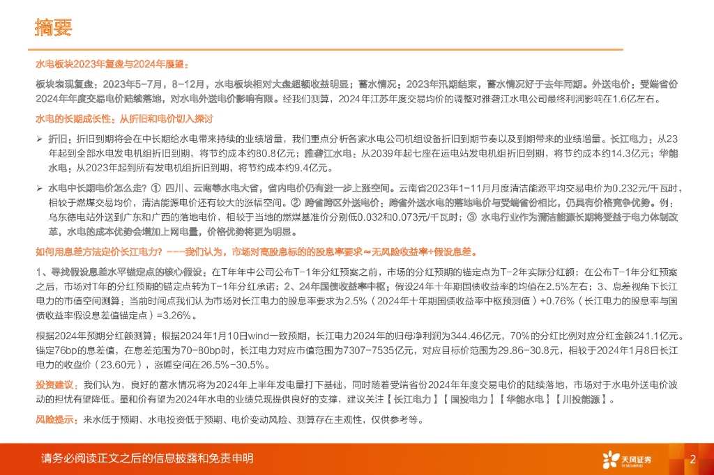 天风证券:公用事业:装机放缓后,中长期如何看待水电的投资价值?.pdf
