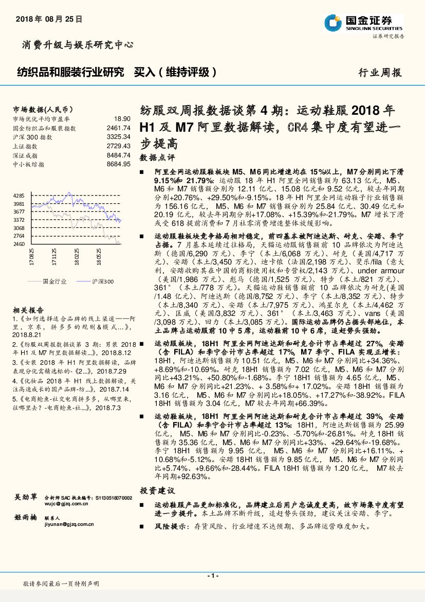 国金证券:纺服双周报数据谈第4期:运动鞋服2018年H1及M7阿里数据解读,CR4集中度有望进一步提高.pdf