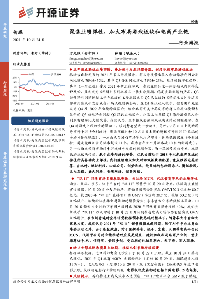 开源证券:传媒行业周报:聚焦业绩弹性,加大布局游戏板块和电商产业链.pdf