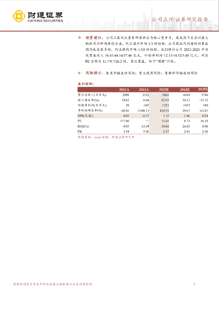 财通证券:益生股份(002458)-公司业绩逐季改善,种鸡龙头弹性可期.pdf