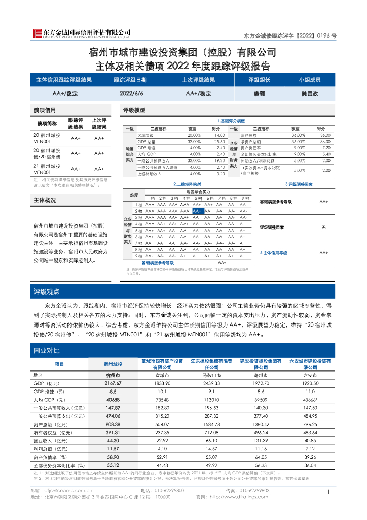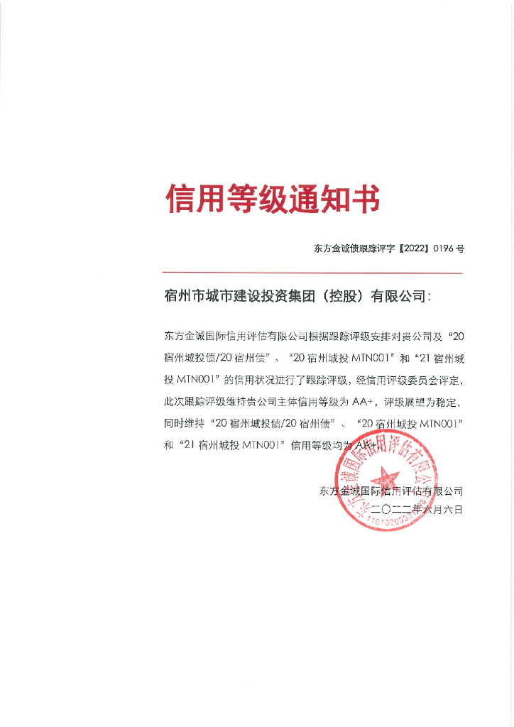 东方金诚:宿州市城市建设投资集团(控股)有限公司主体及相关债项2022年度跟踪评级报告.pdf