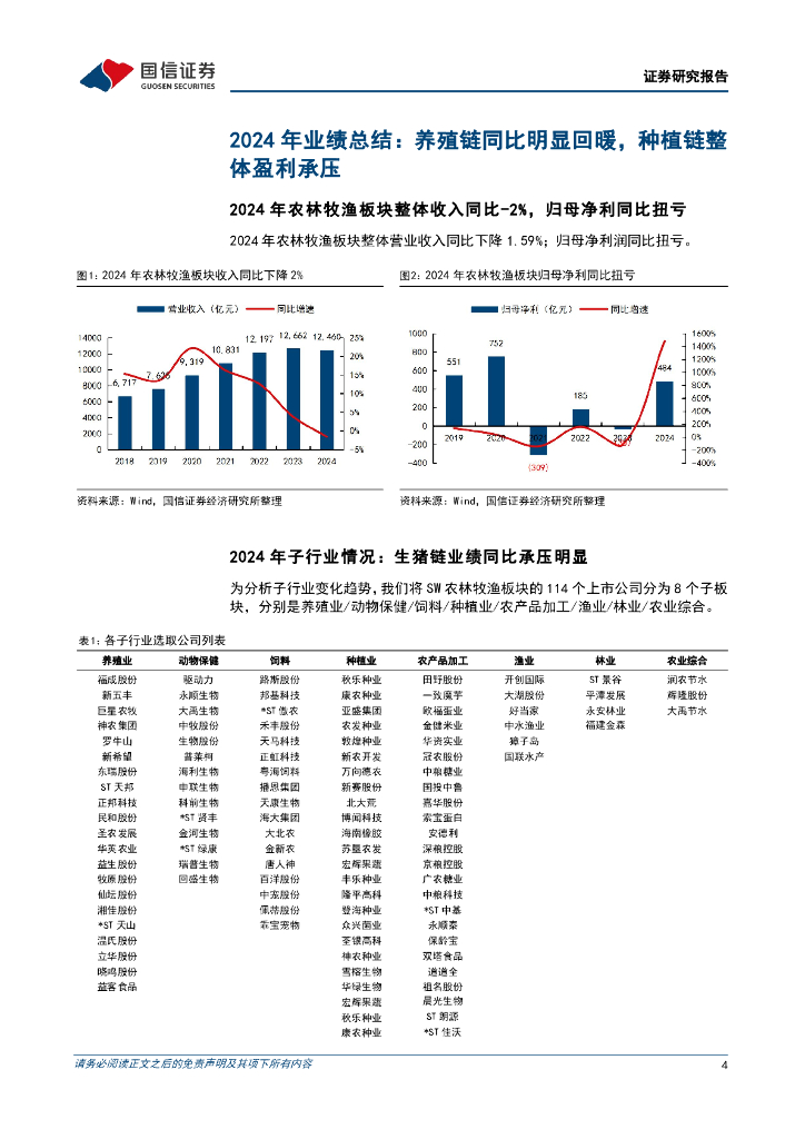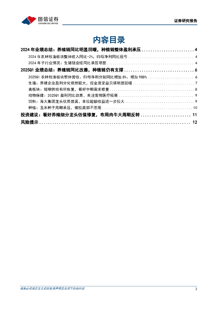国信证券:农林牧渔行业2024年报及2025一季报总结:养殖链整体维持盈利同比改善,种植链标的有望受益粮价景气修复.pdf