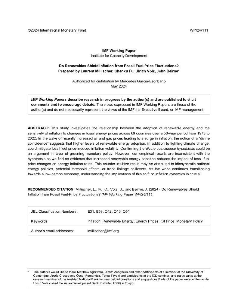 国际货币基金组织:2024可再生能源能保护通货膨胀免受化石燃料价格波动的影响吗?报告(英文版).pdf