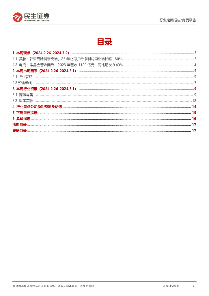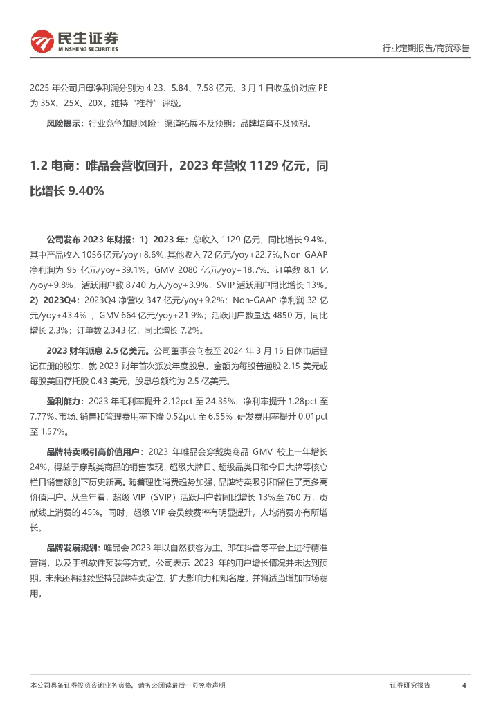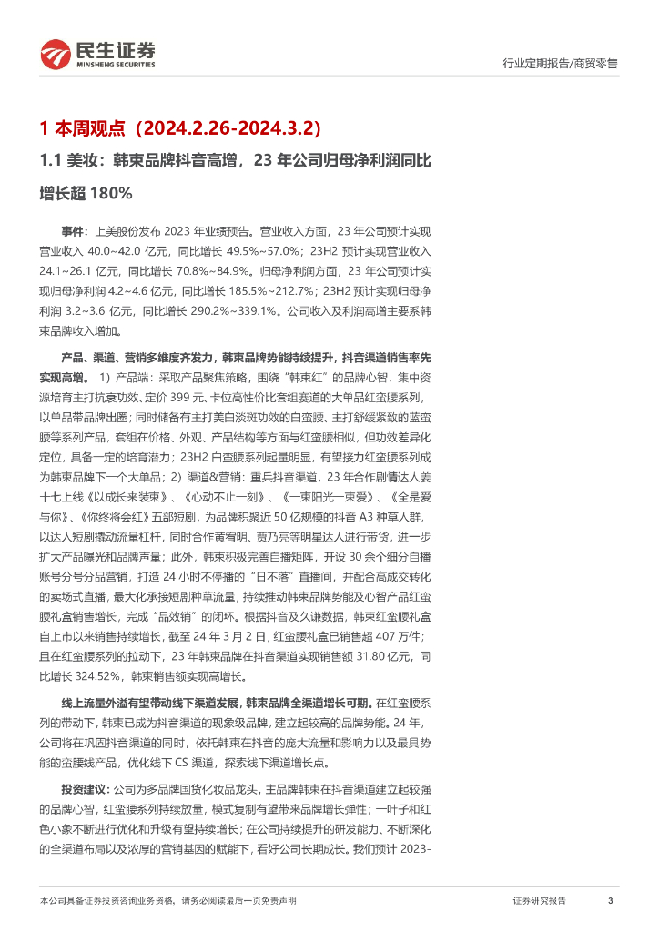 民生证券:零售周观点:上美23年业绩预告净利润同增180%,唯品会23年财报公告净利润同增39%.pdf