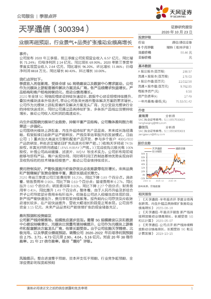 天风证券:天孚通信(300394)-业绩再超预期,行业景气+品类扩张推动业绩高增长.pdf