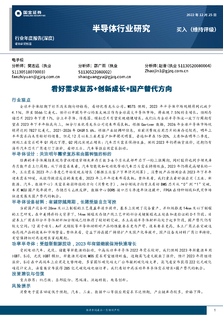 国金证券:半导体行业研究:看好需求复苏+创新成长+国产替代方向.pdf