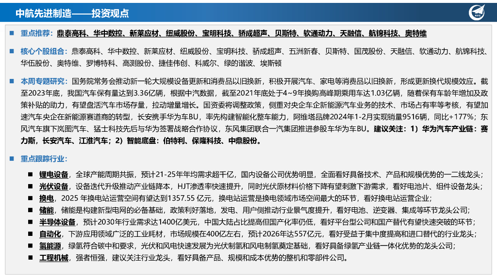 中航证券:先进制造行业周报:以旧换新政策提振需求,汽车央企加速新能源布局.pdf