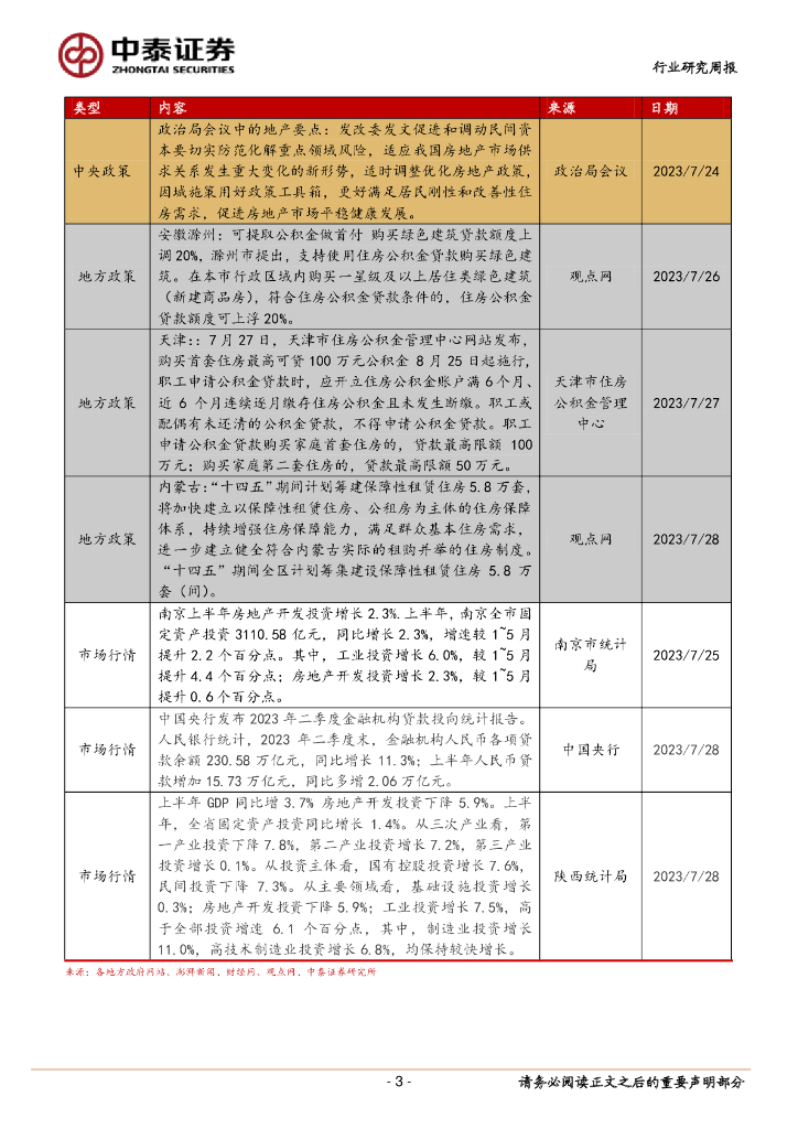 中泰证券:房地产行业研究周报:政策自上而下持续发力,新房成交环比改善.pdf