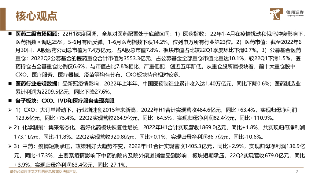 德邦证券:生物医药行业季度策略:CXO、IVD和医疗服务表现亮眼-医药已深度调整、公募严重低配,细分板块或迎来机遇.pdf