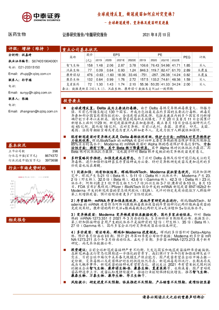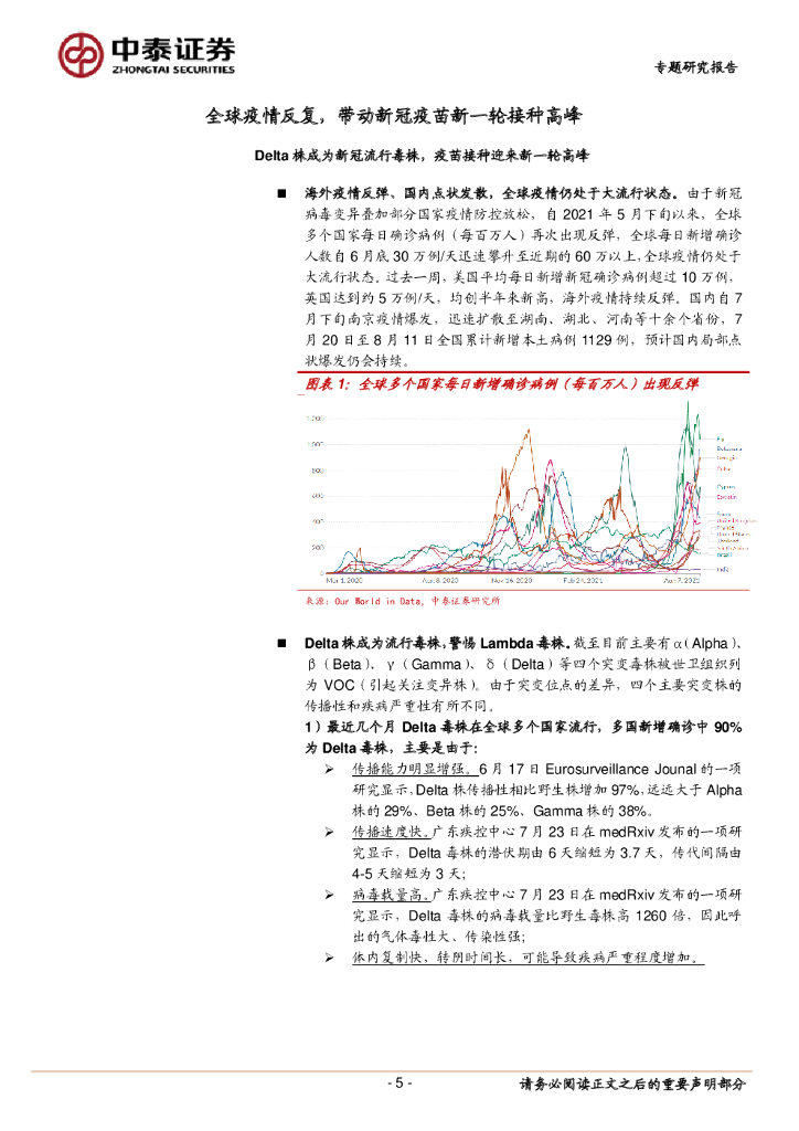 中泰证券:医药生物——全球新冠疫情、变异株及疫苗研发进展-全球疫情反复,新冠疫苗如何应对突变株?.pdf