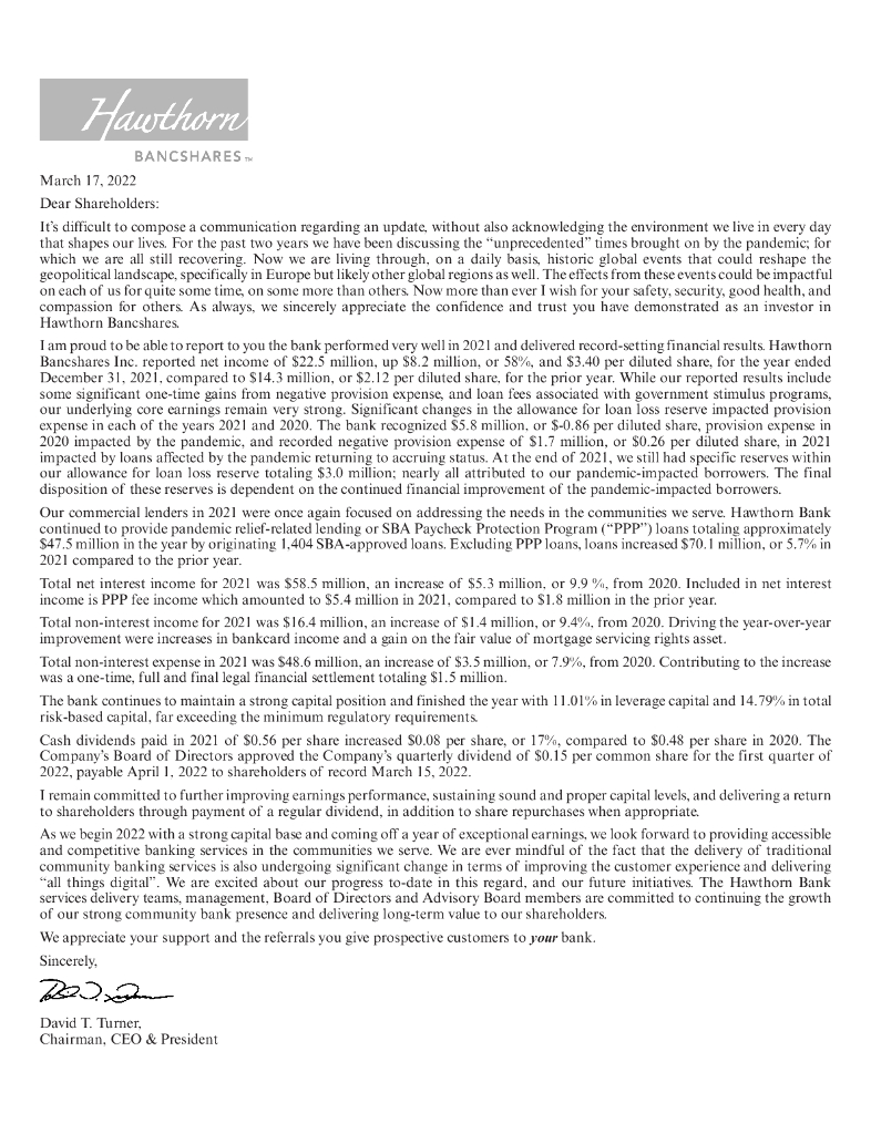 Hawthorn Bancshares, Inc.(HWBK)2021财年年度报告(英文版).pdf