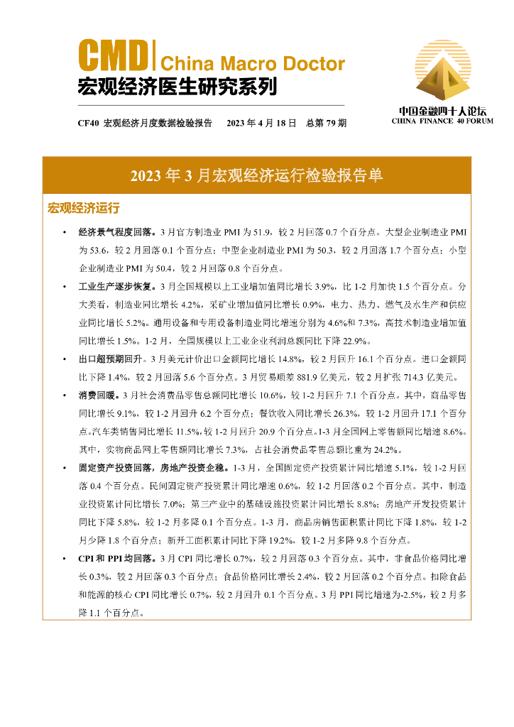 金融四十人论坛:2023年3月宏观经济运行检验报告单.pdf