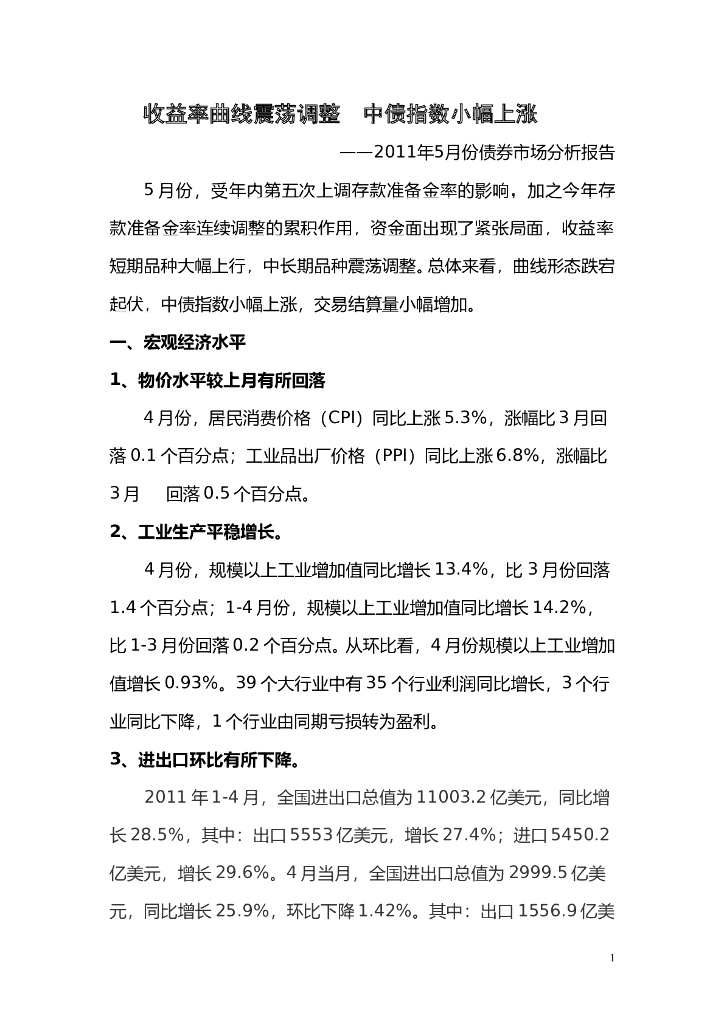中债研发中心:2011年5月份债券市场分析报告.doc