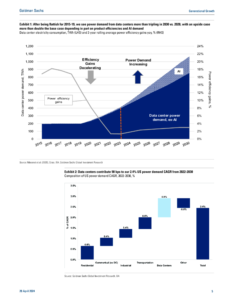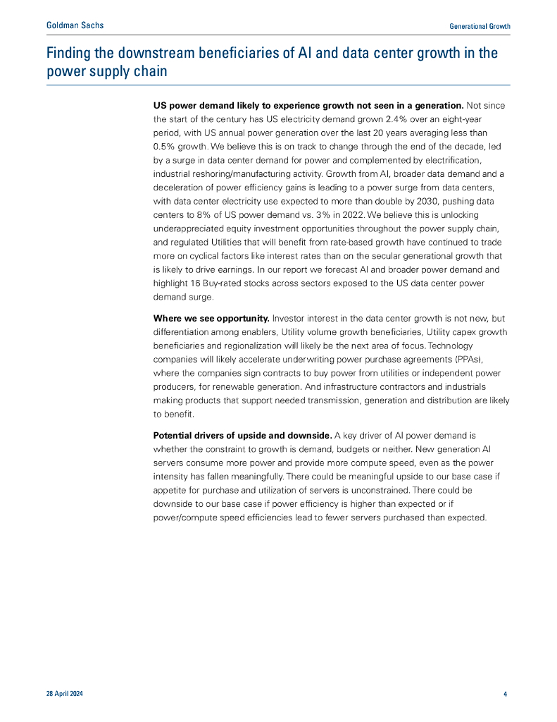高盛:2024代际增长报告:人工智能、数据中心和即将到来的美国电力需求激增(英文版).pdf
