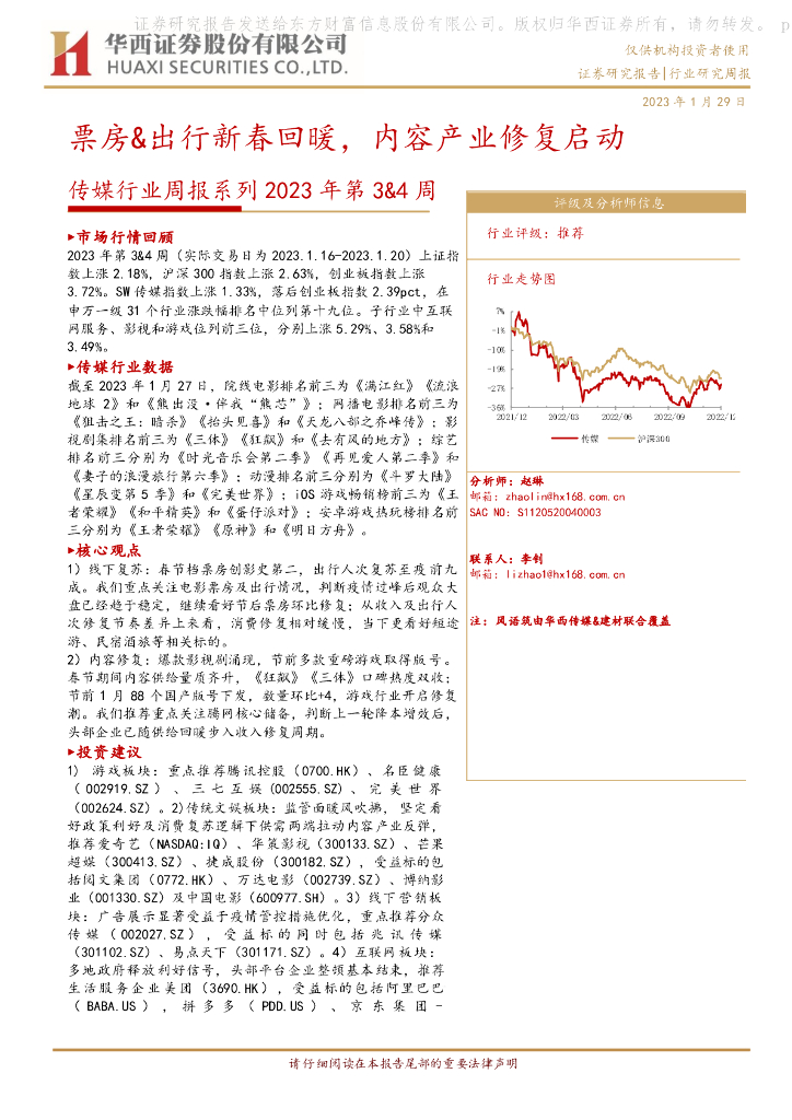 华西证券:传媒行业周报系列2023年第3&4周:票房&出行新春回暖,内容产业修复启动.pdf