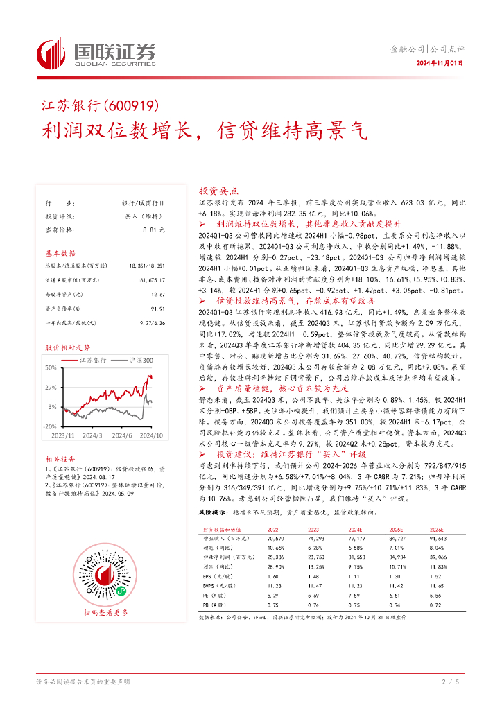 国联证券:江苏银行(600919)-利润双位数增长,信贷维持高景气.pdf