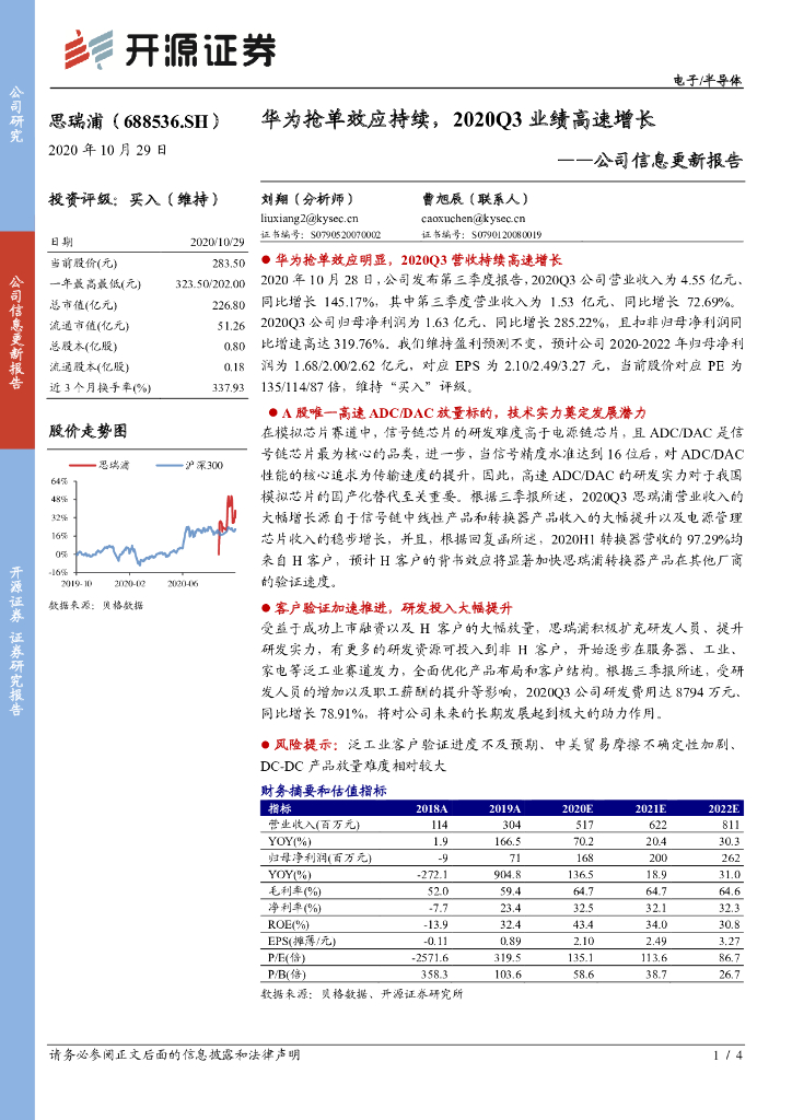 开源证券:思瑞浦(688536)-公司信息更新报告:华为抢单效应持续,2020Q3业绩高速增长.pdf