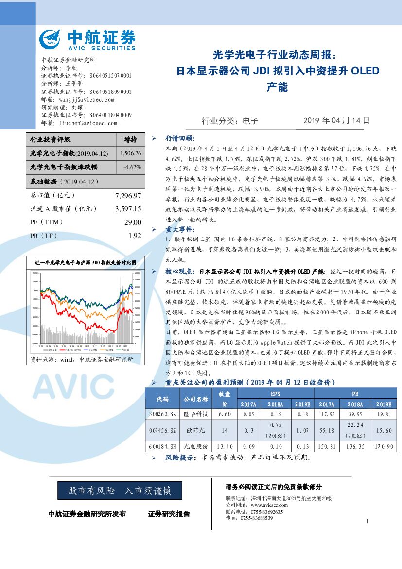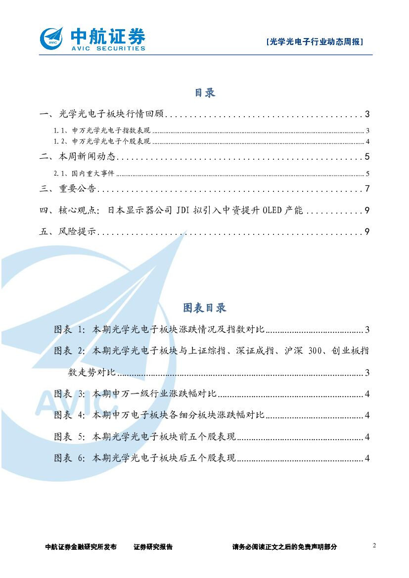 中航证券:光学光电子行业动态周报:日本显示器公司JDI拟引入中资提升OLED产能.pdf
