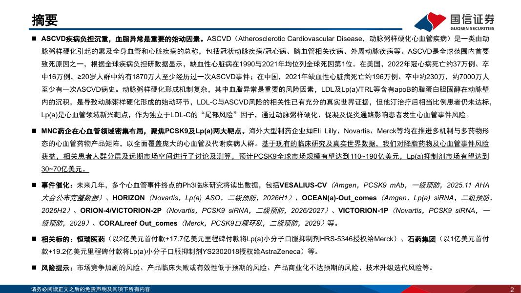 国信证券:创新药盘点系列报告(23):MNC药企在心血管领域密集布局,聚焦PCSK9及Lp(a)两大靶点.pdf