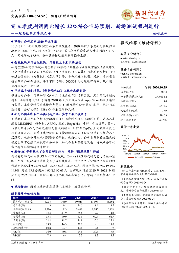 新时代证券:完美世界三季报点评:前三季度利润同比增长22%符合市场预期,新游测试顺利进行.pdf