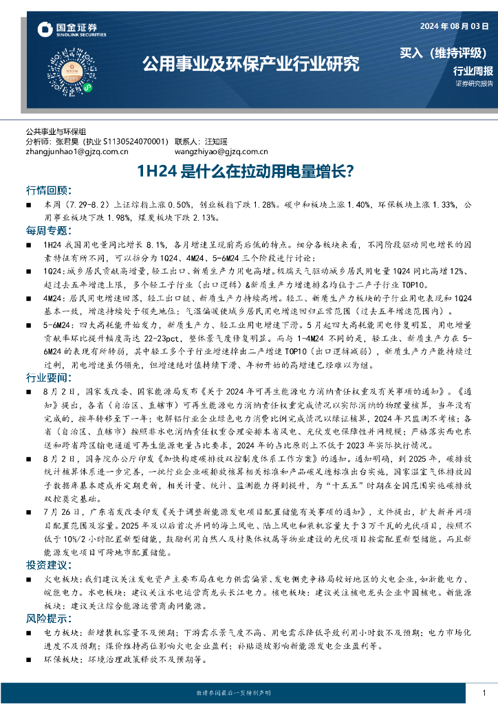 国金证券:公用事业及环保产业行业研究:1H24是什么在拉动用电量增长?.pdf