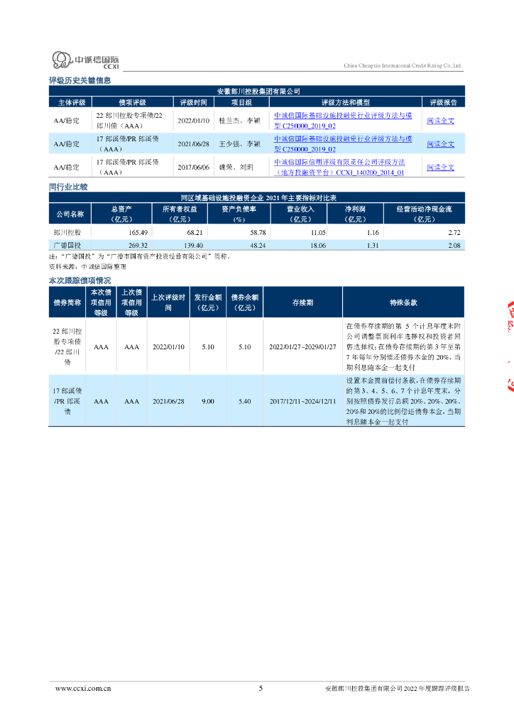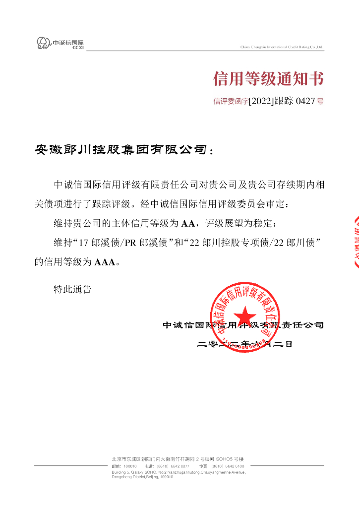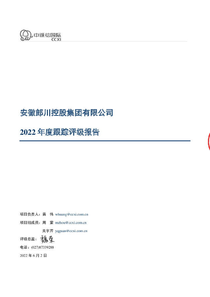 中诚信:安徽郎川控股集团有限公司2022年度跟踪评级报告.pdf