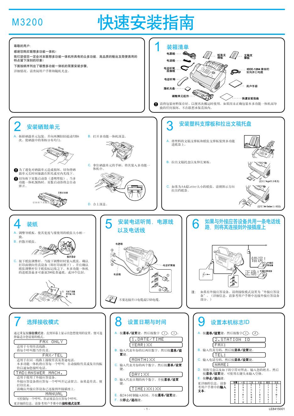 联想 M3200激光多功能一体机 快速安装指南.pdf