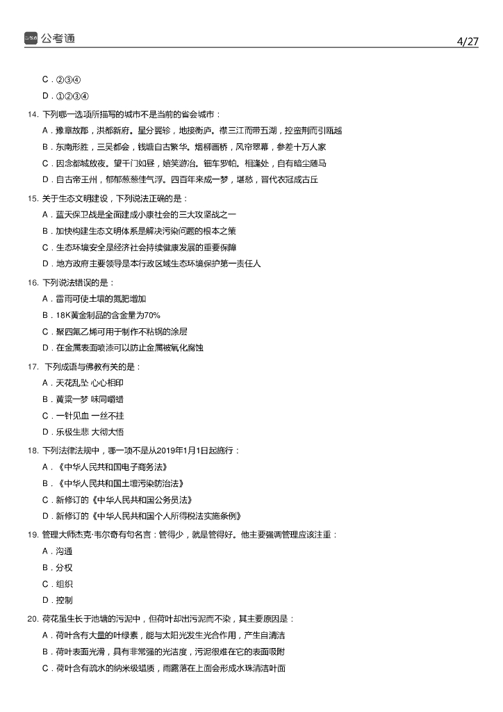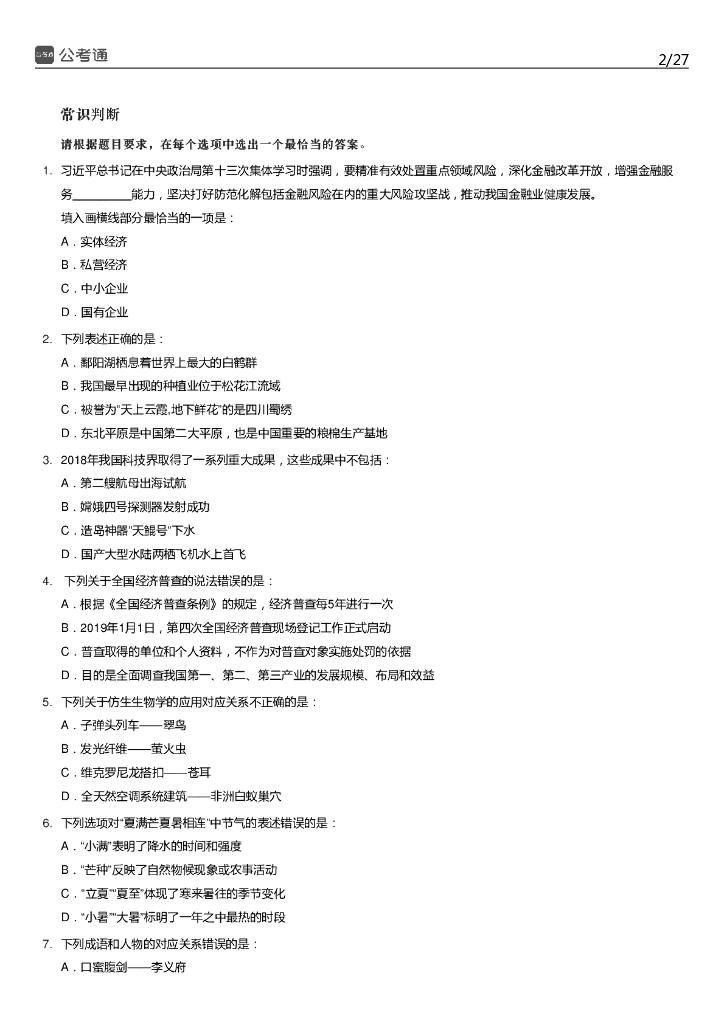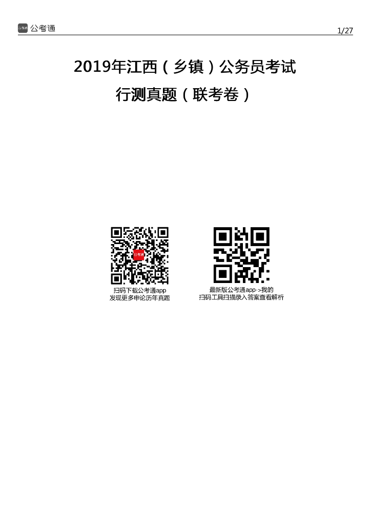 2019年江西公务员考试行测真题及答案(乡镇卷).pdf