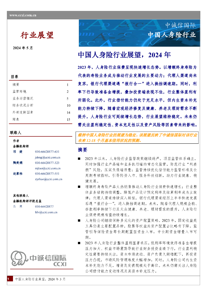 中诚信国际:中国人身险行业展望,2024年.pdf