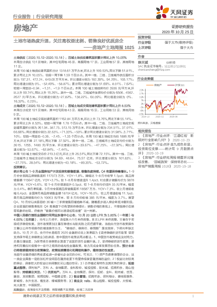 天风证券:房地产土地周报:土地市场热度升温,关注高权益比例、销售良好优质房企.pdf