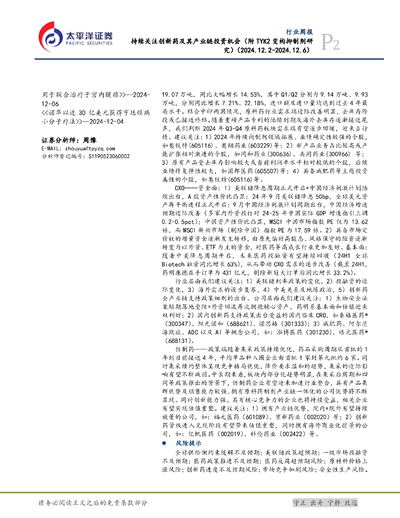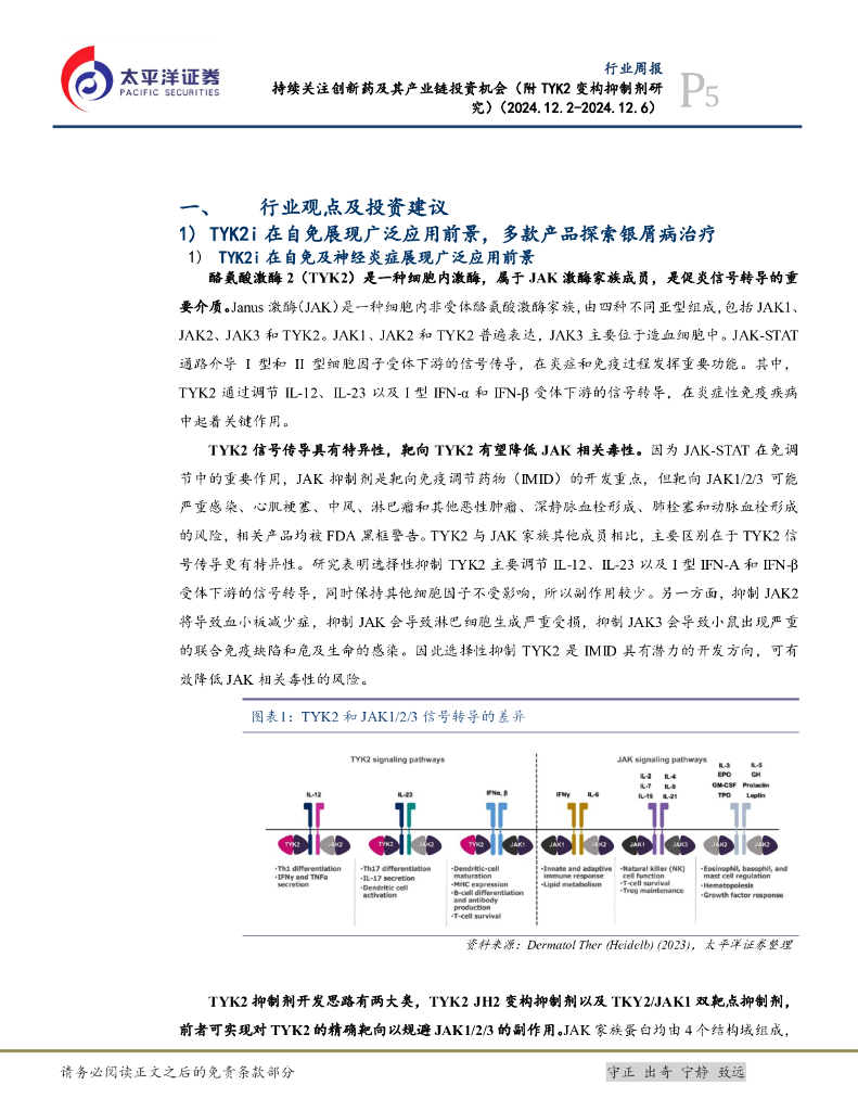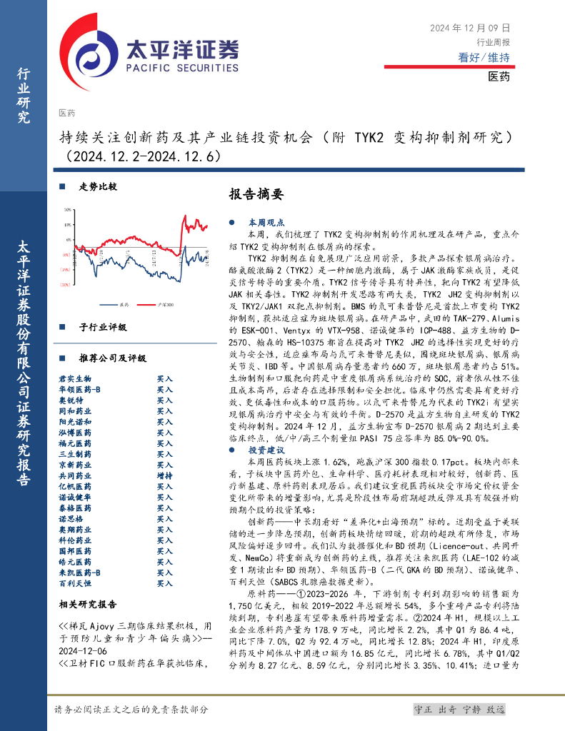 太平洋证券:医药行业周报:持续关注创新药及其产业链投资机会(附TYK2变构抑制剂研究).pdf