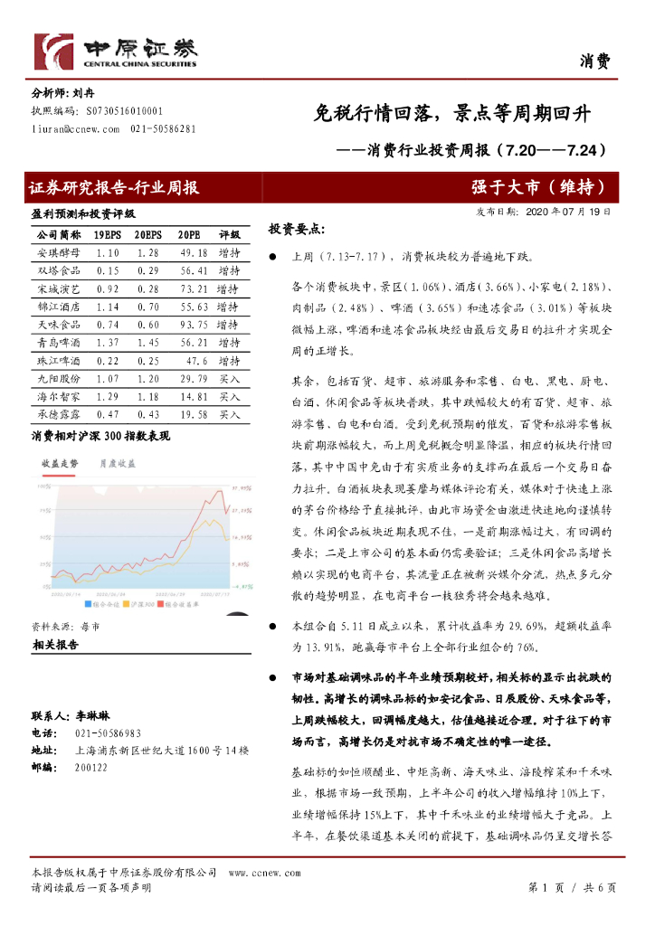 中原证券:消费行业投资周报:免税行情回落,景点等周期回升.pdf