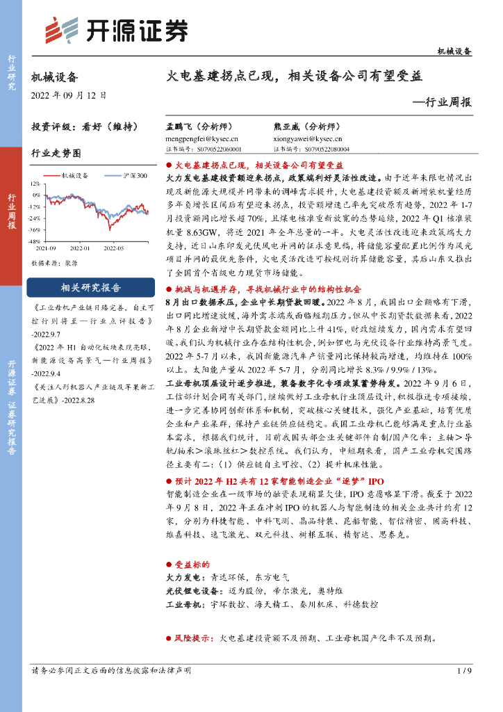 开源证券:机械设备行业周报:火电基建拐点已现,相关设备公司有望受益.pdf