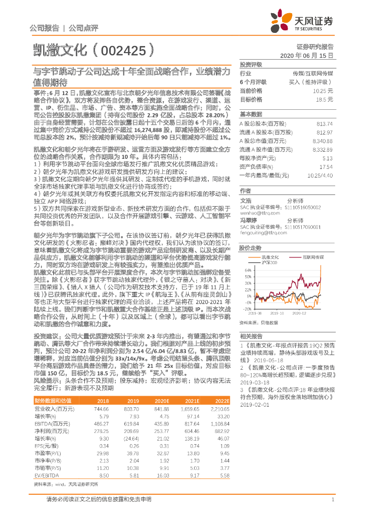 天风证券:凯撒文化(002425)-与字节跳动子公司达成十年全面战略合作,业绩潜力值得期待.pdf