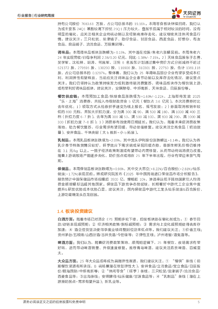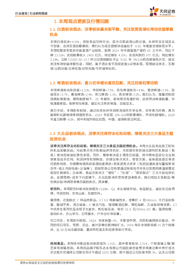 天风证券:食品饮料行业周报:淡季白酒表现平稳,关注乳制品25年机会.pdf