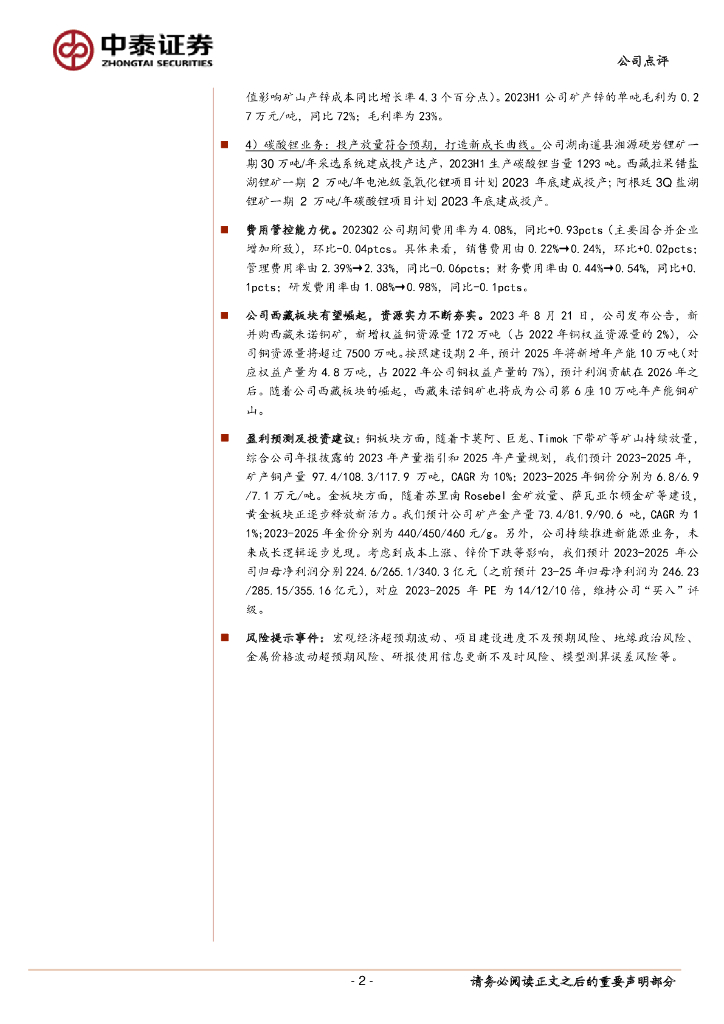 中泰证券:紫金矿业(601899)-23H1铜金产量创新高,矿业巨头再加码西藏铜资源开发.pdf