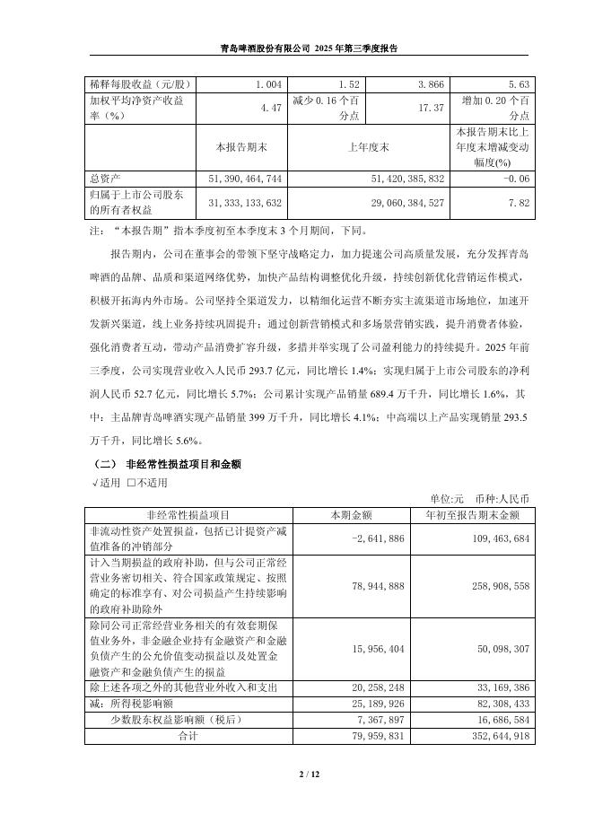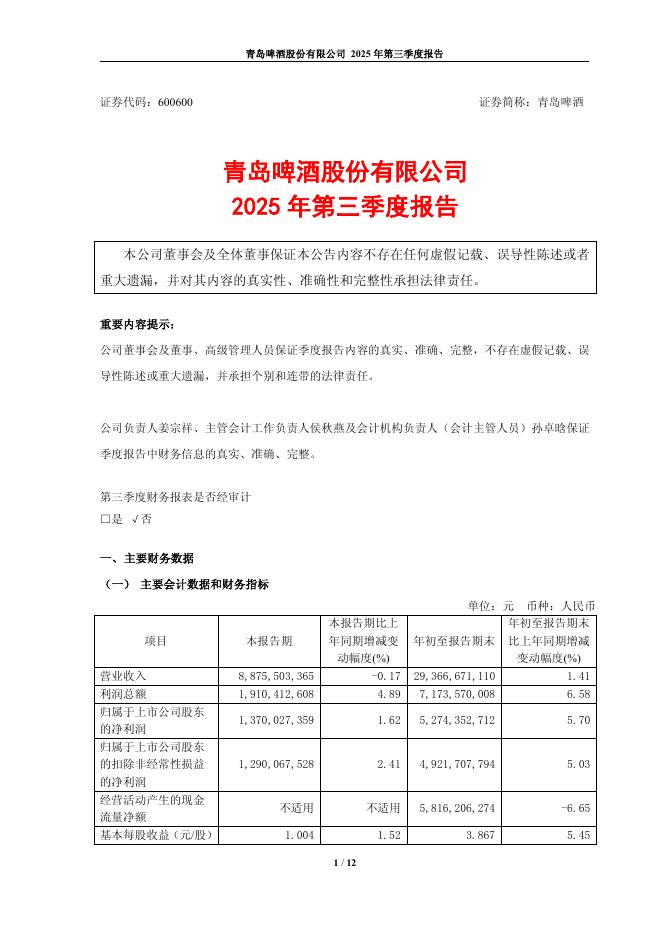 600600-青岛啤酒:青岛啤酒股份有限公司2025年第三季度报告.pdf