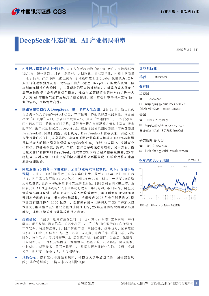 中国银河:计算机行业行业月报:DeepSeek生态扩圈,AI产业格局重塑.pdf