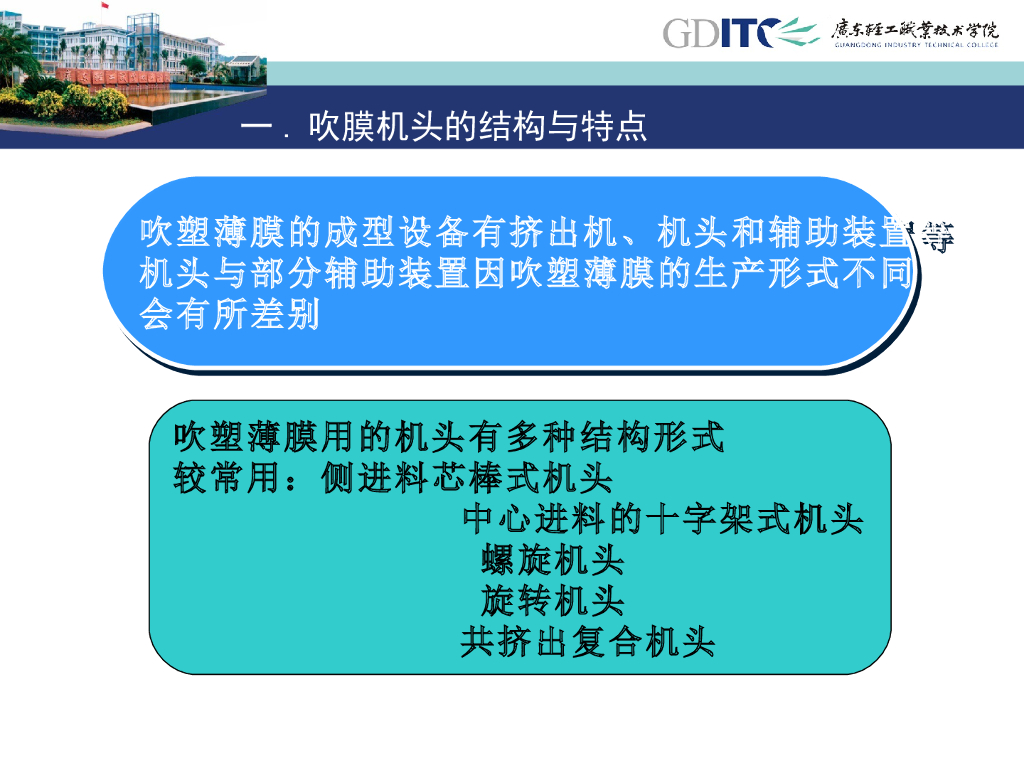 《塑料挤出成型》演示文稿-项目3 挤出薄膜 单元2:吹塑薄膜机头结构.pdf