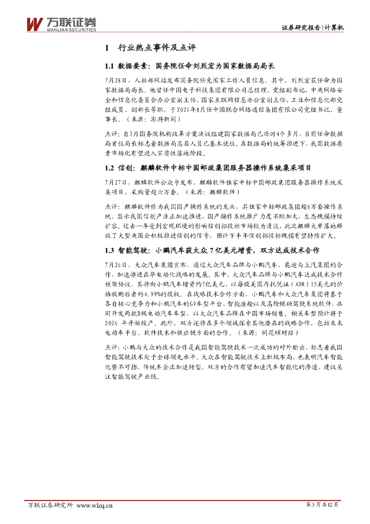 万联证券:计算机行业周观点:数据局局长就任,信创大单落地.pdf